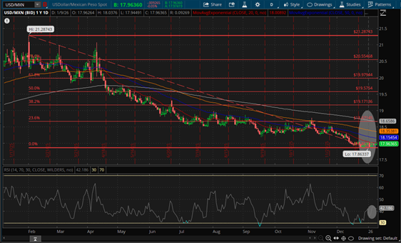 USD/MXN (US Dollar vs; Mexican Peso Spot) Daily Chart 1 Year